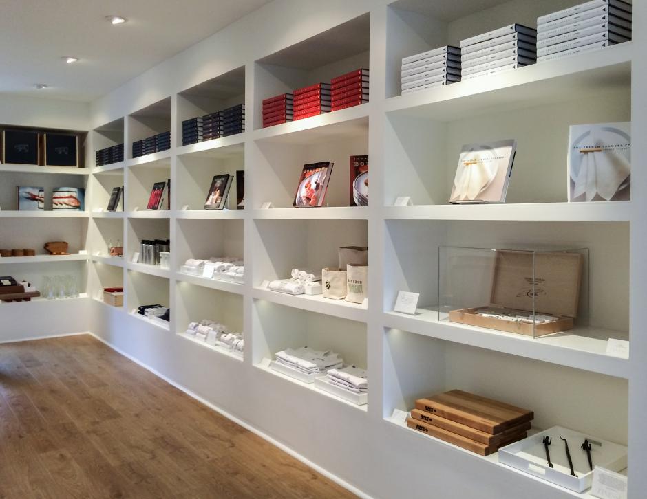 The small store in Yountville sells primarily Keller-branded goods and is the perfect spot for any enthusiast who's interested in an array of hand-selected kitchen tools, apparel, gifts and accessories. Wooden spoons sell for $8. A silver clothespin keepsake, modeled after the the iconic wooden version, for $100. And, in addition to practical logo merchandise, there's the extravagant high-end collaborations: a Thomas Keller Limited Edition MAC Knife Set with etched signatures in laser-etched logo box for $900, feel like suitable extensions for the brand.